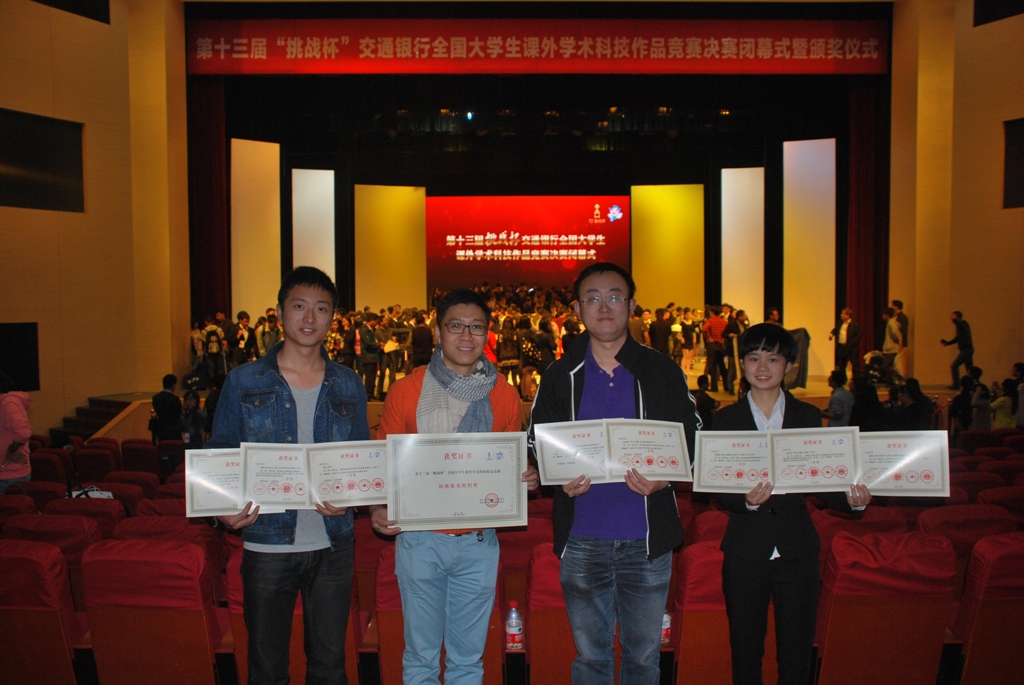 10月13日-17日,由共青团中央、中国科协、教育部、全国学联和江苏省人民政府共同主办的第十三届“挑战杯”全国大学生课外学术科技作品竞赛决赛在苏州举行。在本届竞赛中我校学子再获佳绩,有3件作品获二等奖、3件作品获三等奖,以团体总分180分再次成为下届竞赛的发起高校,学校获校级优秀组织奖。此外,本届竞赛新增了“累进创新奖”与“交叉创新奖”评选,我校获得“累进创新奖”金奖1项,“交叉创新奖”三等奖1项。