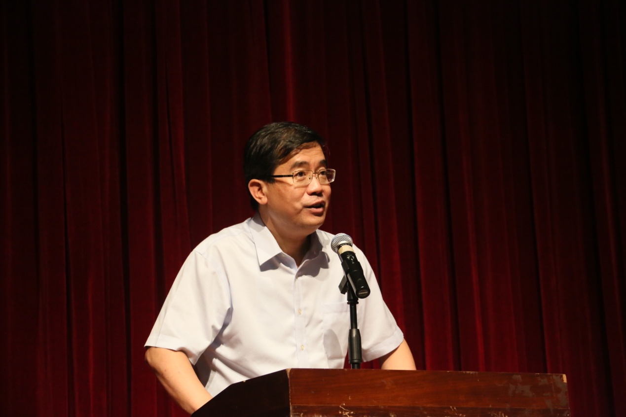朱民在庆祝活动上致辞,代表学校党政向全体教师致以节日问候,向受表彰的教师表示衷心祝贺,向长期以来为学校建设与发展作出贡献的老教师、老领导、老同志表示崇高敬意。朱民指出,在这个属于教师的节日里,要为潜心育人的东华好老师衷心点赞。他们扎根教书育人、科学研究和服务管理一线,不仅在业务上捧回了金杯银杯,更加在学生当中留下了良好口碑。对于这样的东华好教师,不仅要为他们点赞,更要以他们为学习榜样和行动标杆,营造“好老师”不断涌现的文化土壤、构建“好老师”好上加好的政策制度。朱民指出,学校正处于“十二五”规划收官、“十三五”规划编制、全面实施深化综合改革和全面推进依法治校的关键时期,要为锐意改革进取的教职员工加油鼓劲,只要广大师生员工凝心聚力,把共享改革发展成果的良好夙愿转变为理解改革、拥护改革、坚持改革的坚定意志与行动,就一定能够推进学校实现快速发展。朱民指出,学校在60余年的办学过程中,形成了很好的精神文化积淀,这是学校宝贵的精神财富,广大师生员工有责任让优秀深厚的东华文化传承创新。朱民还以校园原创话剧《钱宝钧》的原型,华东纺织工学院院长、中国纺织大学名誉校长钱宝钧先生为例,倡导广大教师积极弘扬和践行社会主义核心价值观,争做党和人民满意的“四有”好老师。