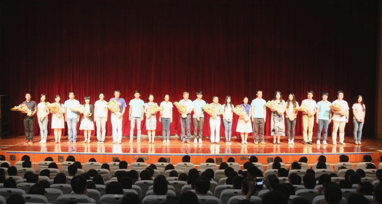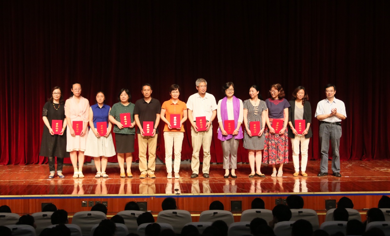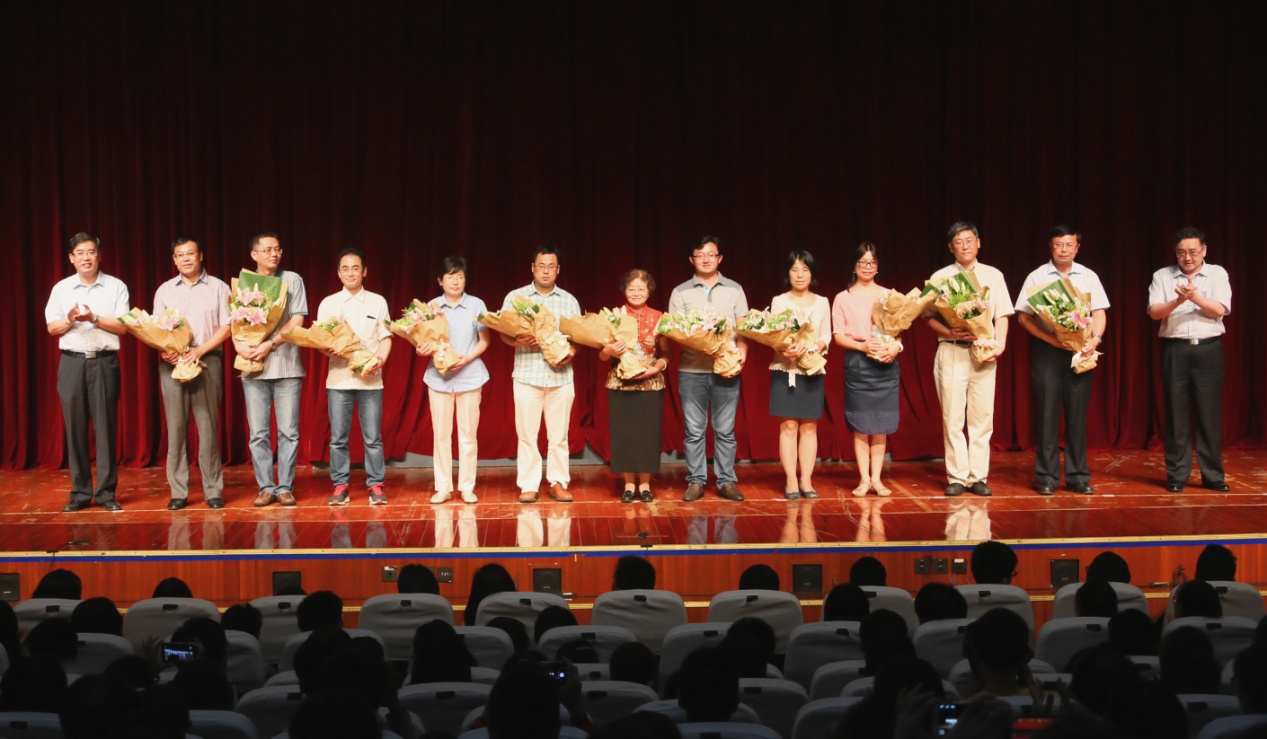 朱民书记、蒋昌俊校长为受表彰教师代表献花送上祝福