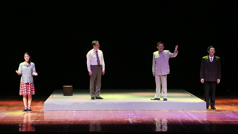 9月8日,该剧还登上了上海市教师节主题活动的舞台,进行社会公演,让更多的社会大众了解到老一代东华人、中国化纤事业开拓者们的优秀感人事迹。上海市副市长翁铁慧出席活动并观看演出,还在演出前看望了钱宝钧先生的小女儿、北京大学钱敏平教授,以及剧中人物原型潘鼎和王依民教授,我校朱民书记、蒋昌俊校长一同出席接见活动。市教卫工作党委和市教委领导、我校刘淑慧副书记、宋立群副校长、党委常委袁孟红也现场观看演出和慰问演职人员。