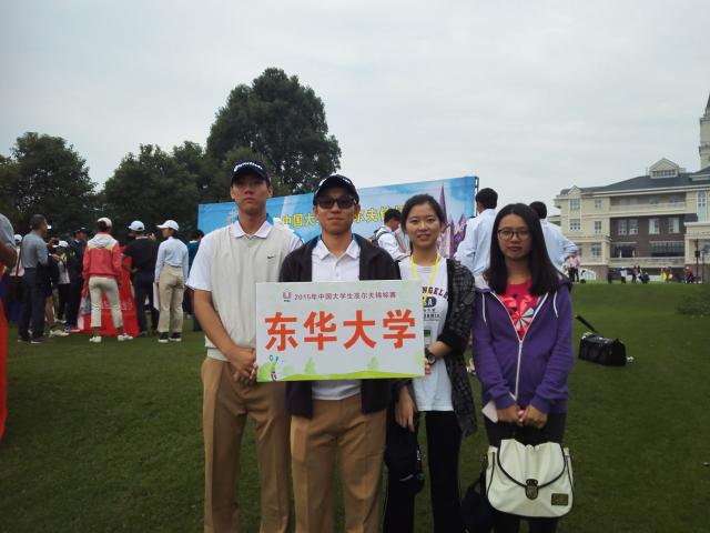 2015年中国大学生高尔夫锦标赛日前在湖南常德收杆。我校理学院杨孟陶同学获得非专业组冠军,还收获老鹰奖、小鸟最多奖两个技术奖项。体育部教师王勇获得教授组个人总杆第六名,并获得最远距离奖和最近洞两个技术奖项。
