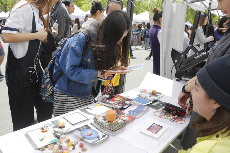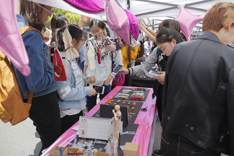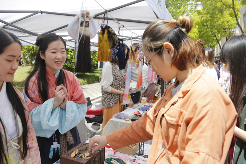 一年一度的环东华时尚周创意市集又在校园里登场了。无论是延安路校区还是松江校区,大大小小的摊位上摆放着琳琅满目的艺术作品,既有异域风情的首饰,也有工艺精湛的传统漆器,还有绝对限量版的个性服装……让人目不暇接,流连忘返。集市开市首日,副校长刘春红在延安路校区察看了创意市集开展情况,并与“摊主”们亲切交谈。
