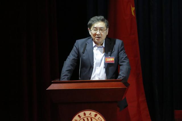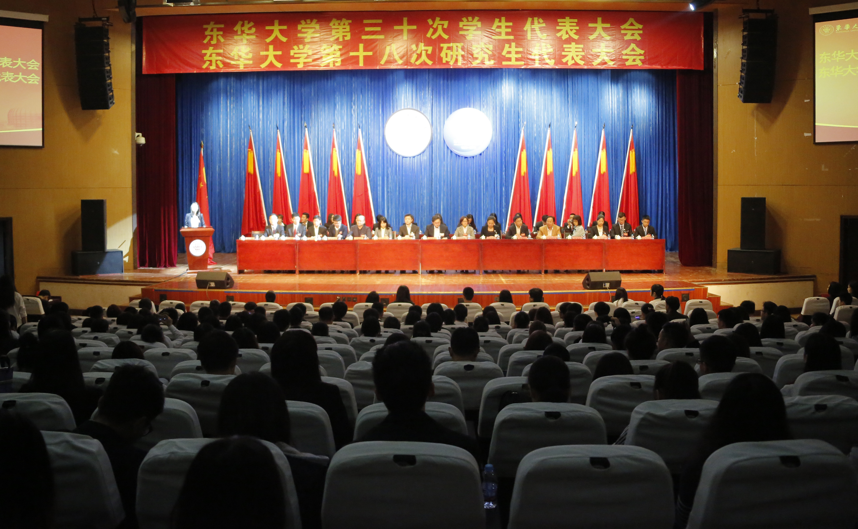 校长蒋昌俊在会上致辞,他指出,我校学生会、研究生会能够紧扣时代主题,把握青年脉搏,全面履行组织青年、引导青年、服务青年的职能,团结带领全校学子勇挑重担,开拓创新,他充分肯定了我校学生会、研究生会在浓厚学术氛围、丰富校园文化、提升广大同学的综合素质等方面开展的工作。蒋昌俊表示,学校高度重视学生提案,对于合理诉求,有关部门将尽量并尽快加以解决,学校移动APP和“书香东华”上线、新校园一卡通运行、增设自助充值点、足球场安装夜间照明装置等举措,都是学校为学生办的实事。此外,他结合创新、协调、绿色、开放、共享五大理念对大会代表并通过代表对全体东华青年学子提出希望和要求:即以创新发展促进内生动力、以协调发展提升综合实力、以绿色发展引领校园风尚、以开放发展拓展教育视野、以共享发展促进校园和谐,希望全体师生秉承五大发展理念,推动学校科学、可持续发展。最后,蒋昌俊寄语新一届学生会、研究生会能够承继荣光,继往开来;希望全体东华学子放眼世界,只争朝夕,刻苦奋进,成为践行社会主义核心价值观、实现中华民族伟大复兴的参与者和促进者。