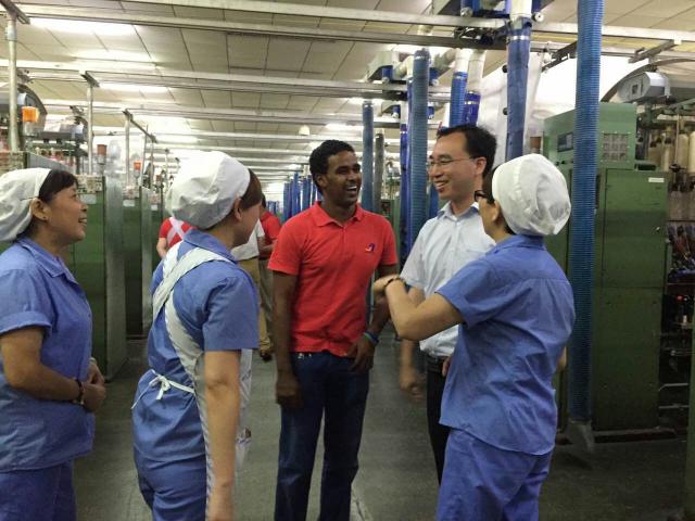 7月21日,我校苏丹留学生艾民等外国留学生走进位于金山区的上海纺织控股集团申安纺织公司的现代化生产车间内开始暑期社会实践。国际文化交流学院吴小军副院长和该生导师、纺织学院王华副教授来到申安公司,看望在企业实习的留学生并与企业负责人讨论留学生教育与上海纺织国际化战略对接事宜。