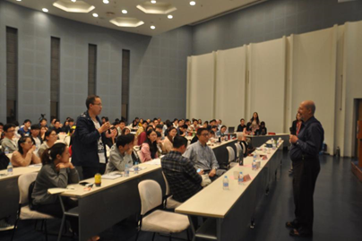 (雷伊鲍曼教授作报告并与学生互动)
