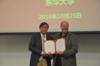 10月25日,美国国家工程院院士、俄罗斯自然科学院外籍院士、美国德克萨斯大学达拉斯分校雷伊鲍曼教授受聘为我校顾问教授。副校长卿凤翎出席受聘仪式,人事处有关负责人及材料、纺织、化生等学院教师和学生代表参加仪式。