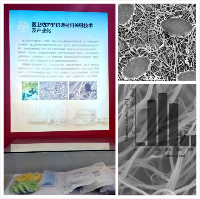 (“医卫防护非织造材料关键技术及产业化”项目展台及资料图)