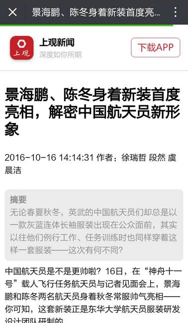[上海教育]“神十一”飞天航天员帅气服装“东华设计”(上海市教委官方微信公众号)(2016年10月16日)