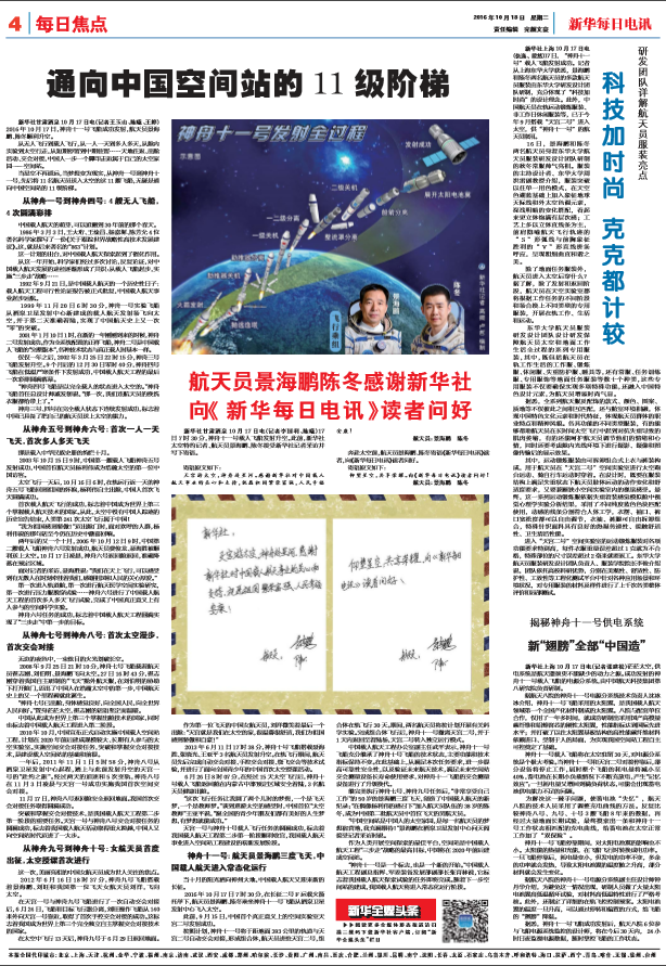 [新民晚报] 神舟十一号太空之旅丨神舟十一号背后的上海传奇 (2016年10月17日)