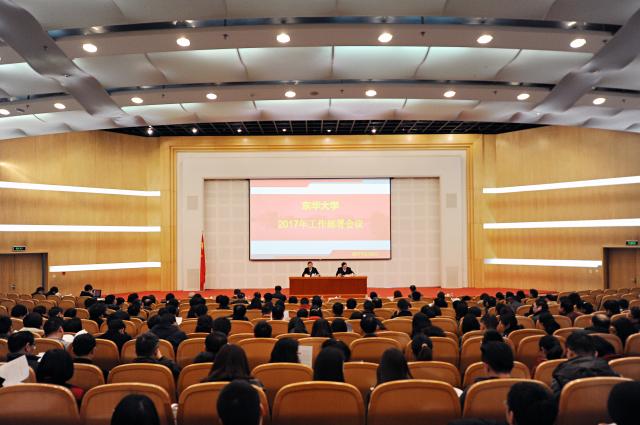朱民通过“回顾过去、展望未来、审视现状”三个维度分析了学校的发展,强调必须通过振奋精神、坚定信心以及更有成效的改革发展成果来凝心聚力,以更加强烈的责任感和使命担当抢抓发展机遇、聚焦工作重点、狠抓深化落实、实现重要突破,加快有特色高水平大学目标的全面实现。他指出,2017年是学校“改革发展深化落实年”,要重点抓好落实学校第十次党代会精神和改革举措,这是新一届党委必须认真履行的光荣使命,要注重贯彻落实的深度性、协同性、实践性,以第十次党代会精神为统领,落实好学校“十三五”发展规划,全面推进综合改革,努力抓住关键问题、实质内容和管用举措。要重点抓好“十三五”发展规划的落地落实,将规划内容和改革举措转化成工作实践,锲而不舍抓落实,要抓实、再抓实。要积极推进“进一步深化校院两级管理”和“加强学科专业内涵建设”两项重点工作,实施新一轮深化校院两级管理改革,实现校院两级责权利相统一;立足于国家“双一流”建设,全面提高学校的人才培养能力,提升人才培养质量和水平。朱民最后强调,对照今年提出的各项目标任务,全体东华人,特别是广大干部要把抓落实促发展作为共同的价值追求和行为准则,撸起袖子加油干,俯下身子抓落实,坚持以师生为中心的发展理念,坚持调查研究的群众路线方法,坚持蹄疾而步稳、稳中求进的工作原则,凝聚共识、协调推进、形成合力,以高度的责任意识和担当意识,切实将各项工作任务抓在手上、落到实处、干出成效,增强师生员工对学校改革发展的满意度和获得感,努力开创学校改革发展的新境界新局面。