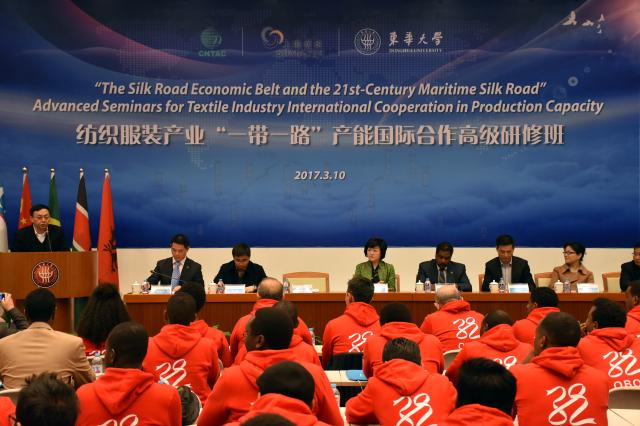 3月10日,首届纺织服装产业“一带一路”产能国际合作高级研修班在我校举行开班仪式,来自埃塞俄比亚、苏丹、肯尼亚、乌兹别克斯坦、阿尔巴尼亚等5个“一带一路”沿线国家的20名纺织企业高管、相关机构高级工程师、高校专业教师在我校将进行为期三周的交流学习,并重点围绕纺织行业发展前沿和国际合作形势、中国纺织服装产业现状与展望等内容深入研讨。埃塞俄比亚驻沪总领事穆勒·塔瑞肯·埃德雷、中国纺织工业联合会国际贸易办公室主任、中国国际贸易促进会纺织行业分会副会长林云峰、上海纺织集团(非洲)有限公司总经理王乐君、我校副校长刘春红及相关学院负责人出席开班仪式。中国新闻社、ICS外语频道、ChinaDaily上海日报、SMG新闻坊等媒体记者现场采访报道。