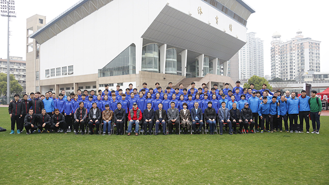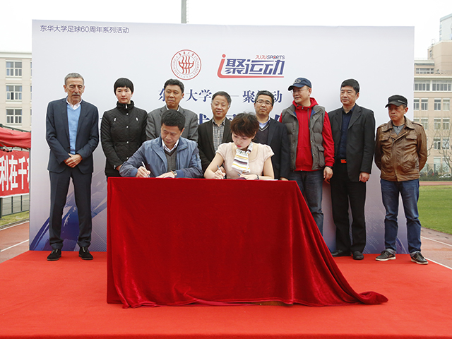 金海燕在签约仪式上讲话,向与会者介绍了学校足球运动开展情况,并预祝双方合作圆满成功。他说,我校是教育部批准的培养高水平足球运动员的试点大学,有较好的足球运动传统,学校足球队曾在各类比赛中斩获佳绩。学校提出在“十三五”期间依托社会资源进行校园足球“国际化”和“职业化”建设,时值学校足球发展60周年,本次合作是校园足球改革发展的重要举措。他表示,希望双方在未来的合作中优势互补、信息共享、互利共赢,构建双方合作发展的新平台、新机制,进一步深化资源利用、业务整合,提升校园足球技战术水平,开拓国际视野、提升创新能力,实现校园足球发展新跨越。