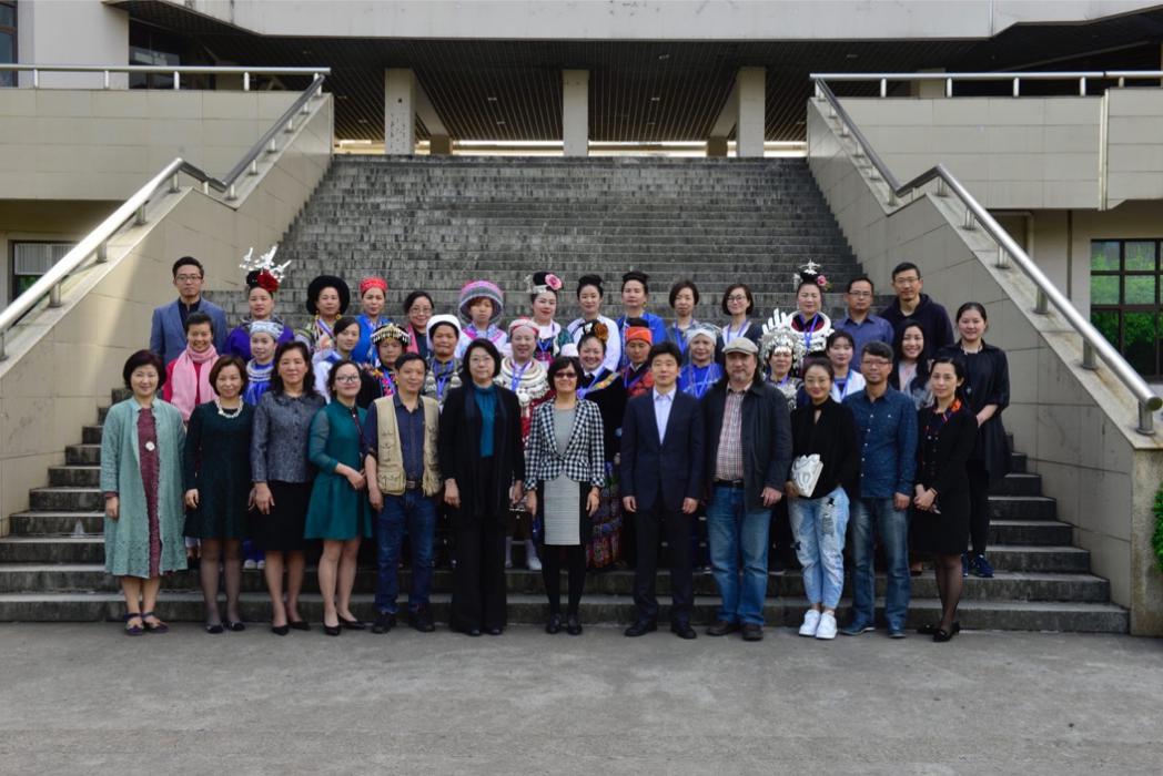 4月18日,我校首期中国非物质文化遗产传承人群研修研习培训计划《传统刺绣创意设计》研修班在延安路校区举行开学典礼。校党委副书记刘淑慧,上海市文化广播影视管理局公共文化处(非遗处)处长杨庆红,贵州省文化厅非物质文化遗产处副处长李安鹏,服装与艺术设计学院党总支书记袁孟红、院长李俊、副院长冯信群等莅临典礼现场,参与此次研修班的教师代表及全体学员参加典礼。
