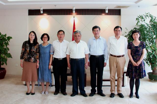 (朱民书记(右三)会见侯惠勤教授(右四))