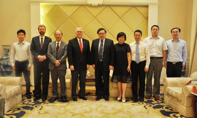 6月2日,蒋昌俊校长在延安路校区会见了美国北卡罗莱纳州立大学(北卡州大)威廉•伍德逊(WilliamRandy Woodson)校长和李百炼副校长来访团,刘春红副校长陪同会见。