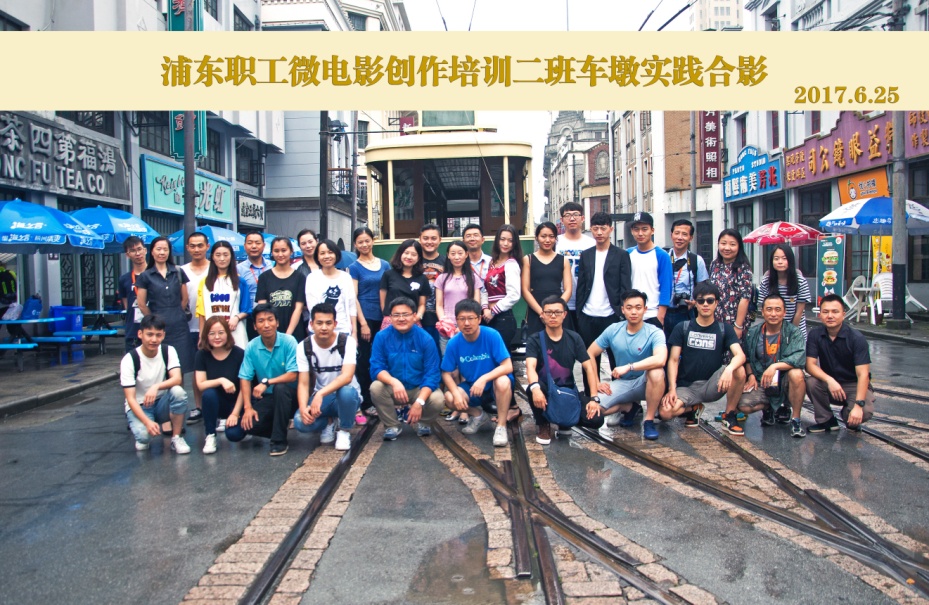 (部分学员和演员在车墩微电影实践拍摄后合影留念,前排右一为唐承鲲老师)