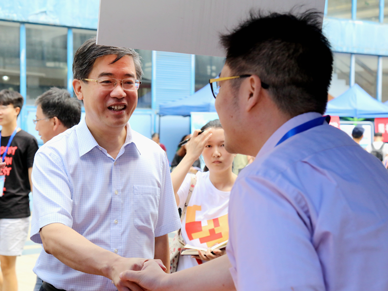 (蒋昌俊校长了解迎新报到情况)