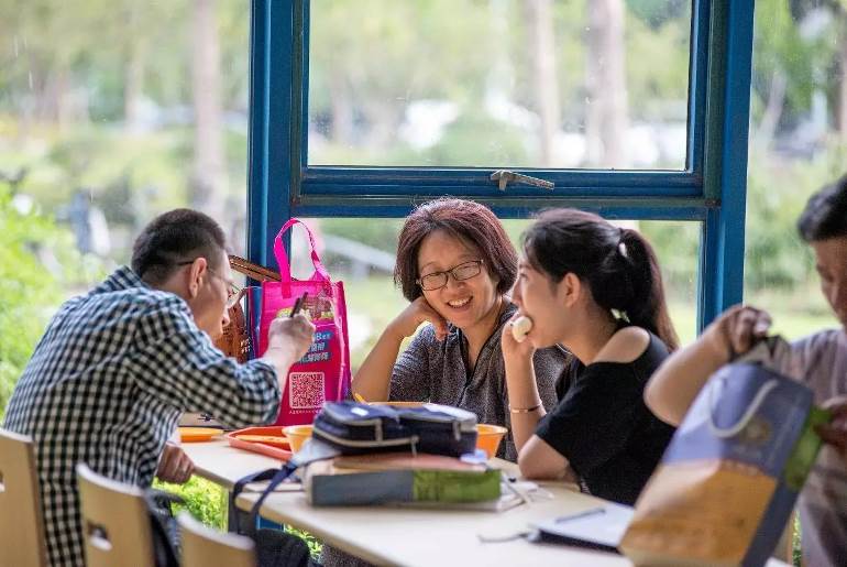 (新生和家长在东华食堂用餐)