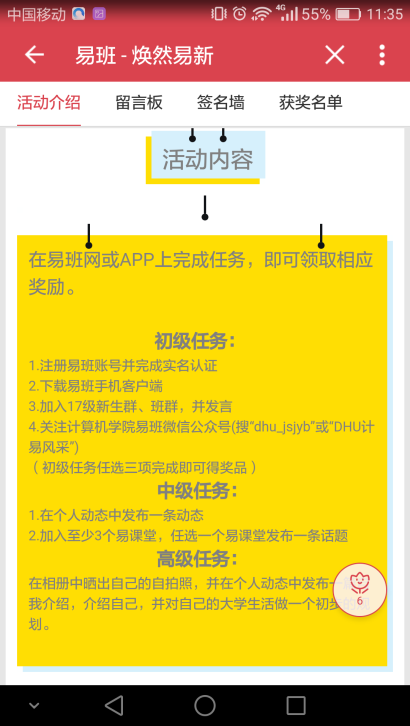 为了方便新生交流,东华易班还打造了网上班级平台,易班班级已然成为新生提前了解学校、老师和同学的重要平台。8月下旬,材料学院理科实验班的小李同学就在易班上找齐了所有同班同学,并开始集结所有人的智慧,设计属于他们自己的班服。小李告诉记者,“之前,我们都是在百度贴吧、QQ群里大海捞针似的找同班同学,响应的人很少,现在只要登录易班可以直接进入我们的班级群,真是太方便啦。”
