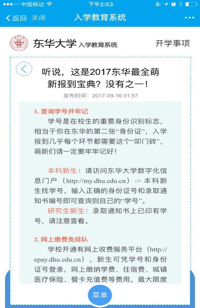 学校立足易班前置开展2017级新生入学教育管理和服务工作