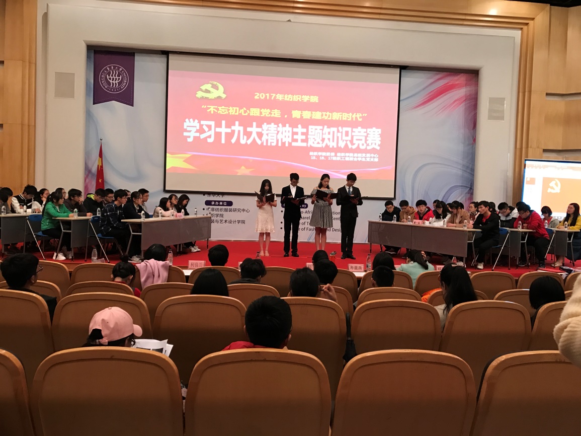近日,纺织学院“不忘初心跟党走,青春建功新时代”学习十九大精神主题知识竞赛在松江校区举行。六支学生队伍从初赛、预赛中脱颖而出入围决赛,以知识竞赛的形式学习、弘扬十九大精神。学院党委、分团委有关负责人,以及专职党务干部、辅导员代表及本科生入党积极分子、党员参加活动。