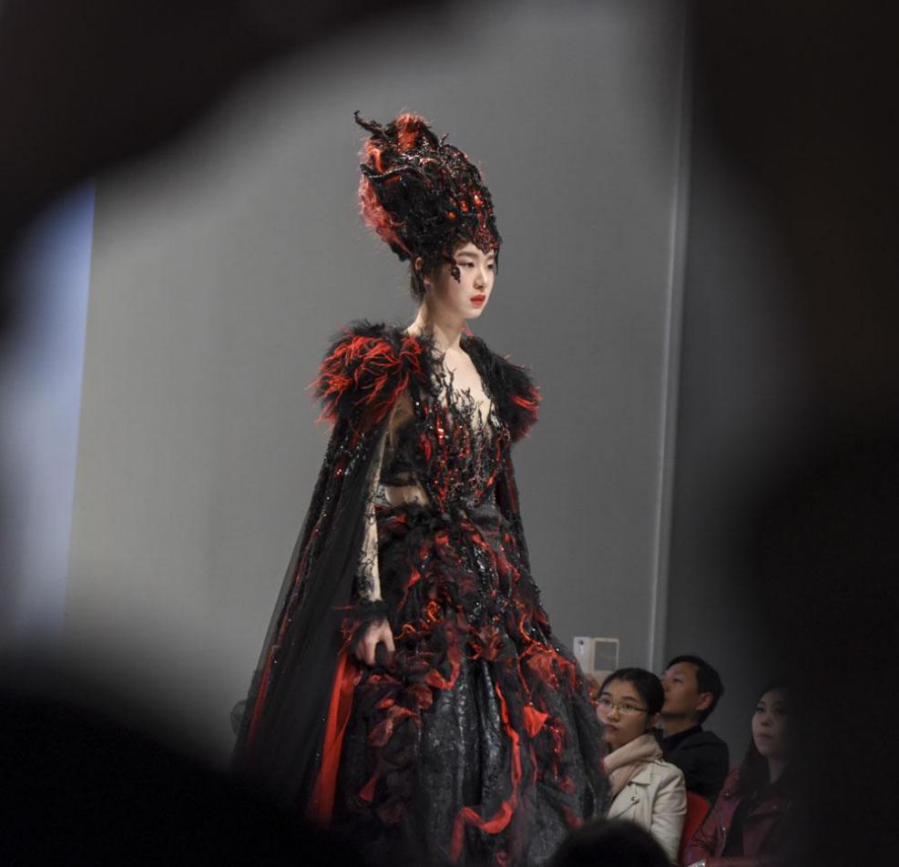 动态秀现场,一大批思想性和艺术性完美融合的优秀创意作品依次亮相。学生设计师们力图突破时间局限,从设计手法、制作工艺、运用材料、配饰等独特视角重塑对服装的认识。