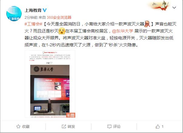 1.[科技日报]声音能灭火?东华师生团队 “挑战不可能” 一款声波灭火器亮相工博会