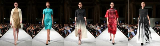 创新今日—海派商务旗袍则是由著名设计师与旗袍企业所组成的团队共同设计的“金木水火土”系列商务旗袍,展现出现今旗袍的演变与巨大的商业价值。
