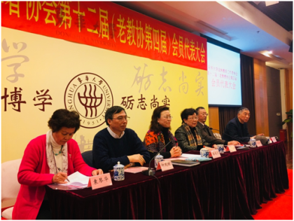 学校第十一届(老教协第三届)理事长王以刚作工作报告。退教协(老教协)自2013年换届后至今,在学校高度重视和支持下,团结广大会员,贯彻“服务会员、服务学校、老有所为、老有所乐”的工作理念和工作目标,工作富有特色、成绩显著,曾荣获市退教协先进集体、市老教协先进集体;数个分会和个人受到多项表彰。王以刚在报告中讲到,退教协(老教协)四年中工作取得进展。一是积极发展新会员和发挥各分会的作用,会员数稳定在700人左右;二是配合学校关工委,形成全方位、全覆盖、多层次的关心下一代的工作队伍;三是研究生督学组、教学巡视组和老教授咨询组三个功能组,积极服务学校教学,提高教学效果,帮助学生成长成才取得成效;四是组织广大会员开展有利于身心健康的各种活动;五是关心慰问老年人身心健康,积极形成阳光和谐氛围。
