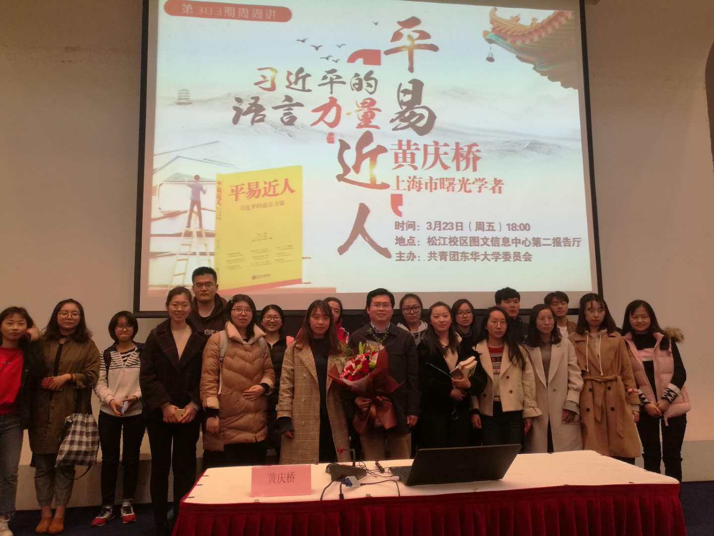 近日,上海市曙光学者、上海交通大学科学史与科学文化研究院副研究员黄庆桥老师做客我校第303期“周周讲”,结合个人著作《平易近人——习近平的语言力量》一书,与现场200余名师生一起畅谈习近平总书记的语言魅力。