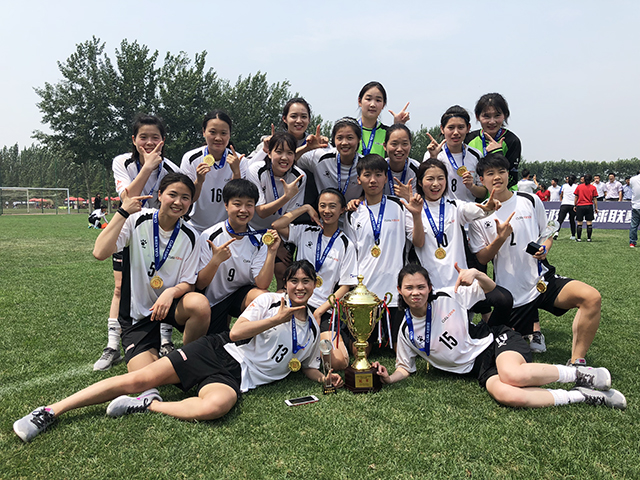 在这赛程密集的一周时间,女足姑娘们坚韧不拔、顽强拼搏、锲而不舍,位列小组第二晋级半决赛,以2:0的比分战胜上届亚军江苏师范大学女足成功进入决赛。决赛现场,面对志在必得的卫冕冠军北京师范大学队,我校女足在人员不整、伤病较多的情况下,将比赛拖入点球大战,并最终赢下比赛,成功捧回冠军奖杯,成为绽放在校园足球绿茵场上的一朵朵“铿锵玫瑰”。
