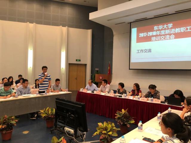 6月13日,学校在松江校区召开会议,组织来自学院(部、中心)、业务部门和机关部处等90余名新进教职工开展入职培训交流。