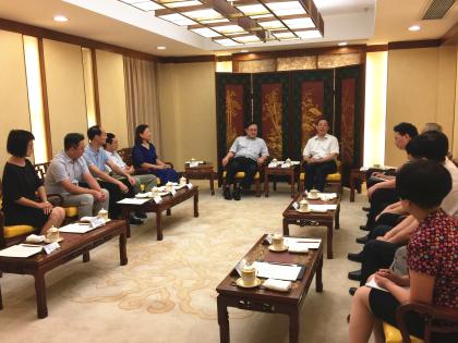 签约仪式前,福建省副省长杨贤金会见了蒋昌俊一行,杨贤金转达了唐登杰省长对蒋昌俊的感谢和欢迎,并热切期待我校和福建省在教育、科技、产业等方面展开合作,结出丰硕成果。福建省政府副秘书长赖碧涛、教育厅厅长林和平、经信委副主任兰文、科技厅副厅长周世举、福州市政府副市长李春参加了会见。