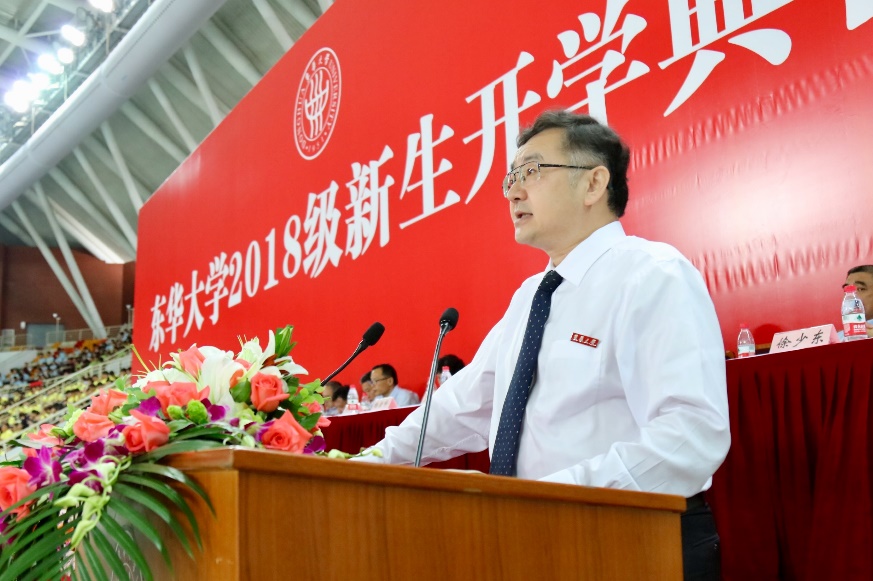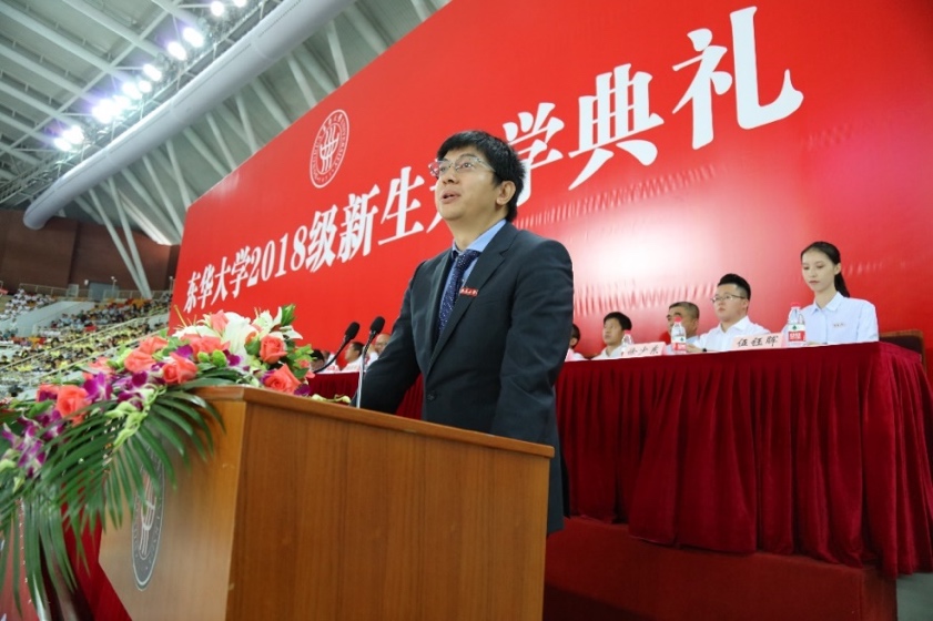 大家上午好!今天,我们在此欢聚一堂,共迎2018级全体新同学加入东华大家庭,感谢你们,选择将人生最重要的时刻在东华度过!祝贺你们,以十年寒窗的苦读,为自己打开了一扇新世界的大门!