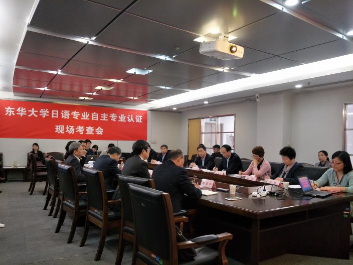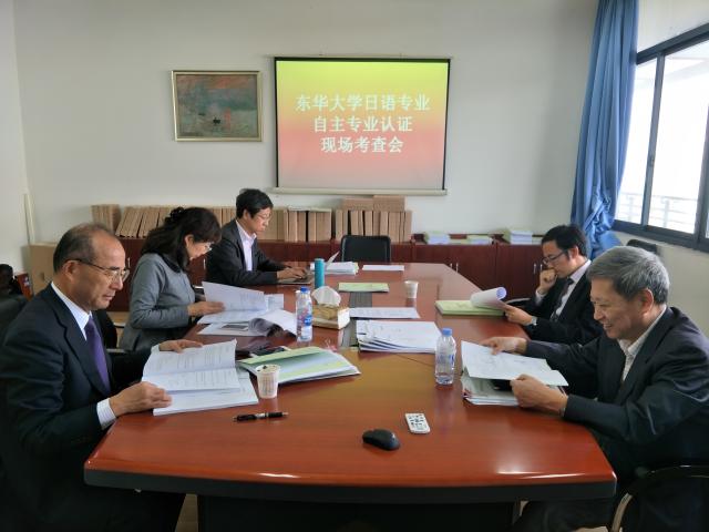 在为期近三天的现场考察中,专家组对学校总体情况和专业建设情况进行详细了解,实地考察了图书馆、语言实验室、日语专业野元菊雄与国松昭文库,并召开座谈会、用人单位电话访谈会,查阅教学管理文件、毕业论文、试卷,并现场听课。
