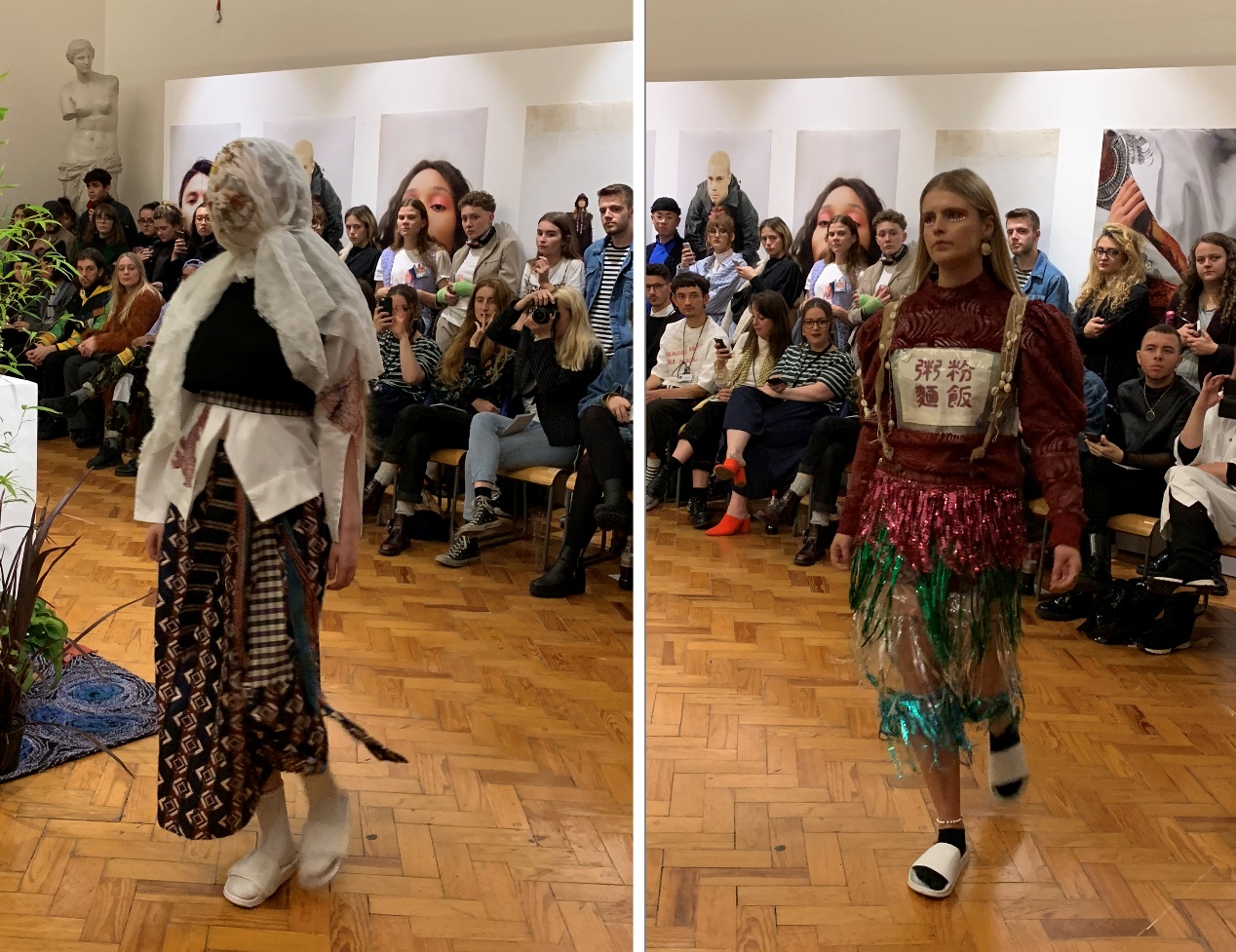 此次活动中展出的26套服装系中英双方服装设计专业学生结对共同创作。作品风格各异,既有传统刺绣等东方元素,体现了近年来我校对非遗传承人刺绣研修培训的成果,又穿插了前卫、嬉皮的西方元素,表现出东西方文化的交融。