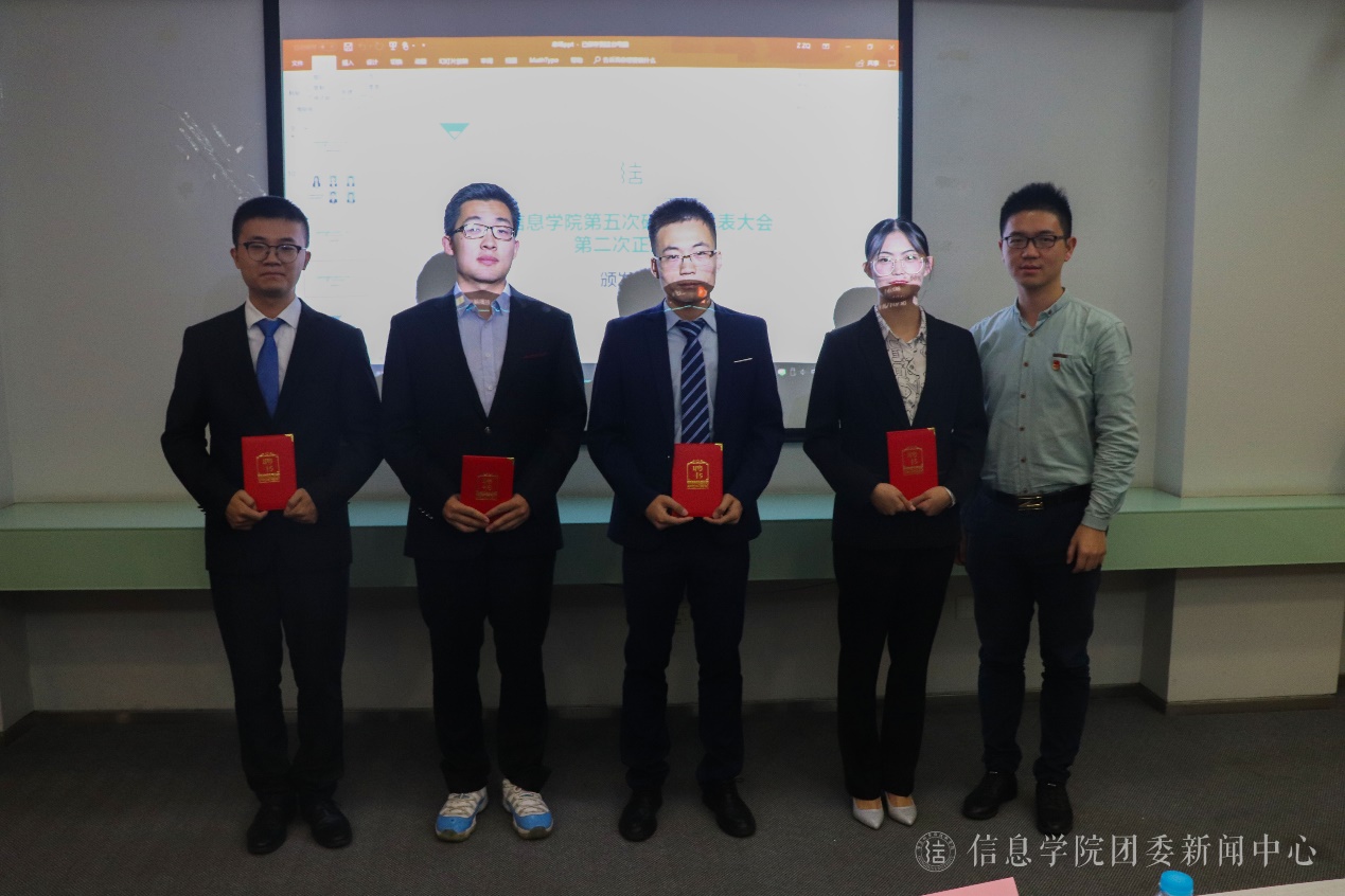 10月30日下午,信息学院第五次研究生代表大会在松江校区图文信息中心第三会议室举行。信息学院党委副书记胡海洋、校团委副书记杨蓉、院团委书记施政及研究生辅导员老师与会,2017级研究生会主席团及全体研究生代表参加会议。