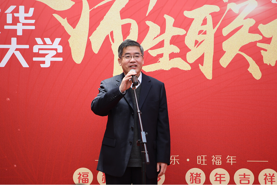 玉犬辞旧岁,金猪贺新春。1月29日农历腊月二十四,我校延安路校区东华食府张灯结彩、一派喜庆祥和。党委书记朱民,党委副书记刘淑慧,副校长陈革、舒慧生与500多名留校师生一起欢度新年。各机关部处、院系负责人及教师代表一同参加联欢。