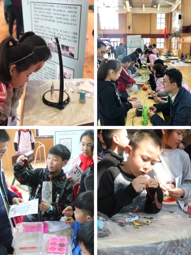 纺织学院纺织材料检测服务部的浮水画和热缩片深得小朋友们的喜爱;化工与生物学院生活化学咨询服务部制作的怪物史莱姆和果冻蜡也是供不应求;机械学院家居机械产品和设计应用服务部的“硬币下沉”和“弄不湿的纸巾”两个科学小实验展示了大气压的强大力量,让孩子们惊叹不已;服装学院服装设计与咨询服务部在现场展示了新型轻质粘土的艺术魅力,他们用色彩缤纷的粘土做成的华衣美服,赢得啧啧称赞。“米粒四射”、“沙漏摆”、体感游戏、辉光球、电学实验、垃圾分类、外语闯关等各种互动体验都让附校学子驻足观察并积极参与。