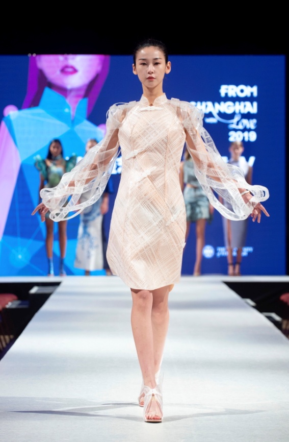 现场,上海市服饰学会也带来了“盛世畅想——融汇传统和时尚的新海派商务旗袍”, 使旗袍这一传统服装焕发出具有当代艺术质感、高品质与实用性兼具的“新海派旗袍”的特色。“新生势力——SCF2019新生代设计师优秀毕业生作品系列”也闪亮登场,展现出毕业生们丰富专业知识背景与技巧运用能力,以及对社会人文、城市发展和技术工艺的关注与思考。