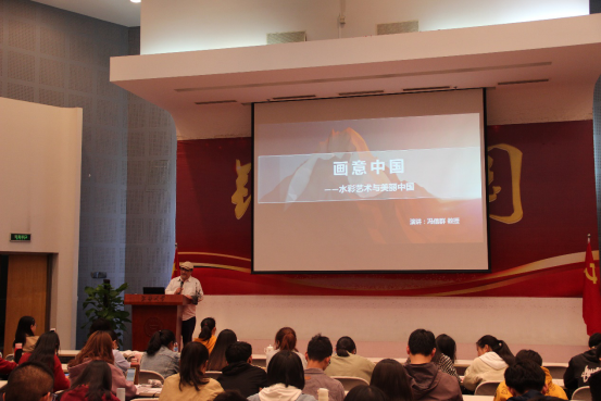 冯信群畅谈了他的写生之路和创作思路,他坚持用朴素而真诚的语言表达原汁原味的风土气息,寻求艺术的精神家园与归宿,结合中国传统笔墨意境和审美精神,体现中华民族对精神境界的向往与追求。在谈到丝绸之路采风的经历时,冯信群教授记忆犹新,表示这段经历是艰苦的,却永远是最幸福的回忆,此外,他还向我们呈现了他在红色文化中的重走长征路,江南文化中的苏州园林的写生作品,使同学们感受到其画作的巨大魅力。