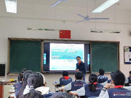 物理系党员教师们首先来到八年级二班教室,由吴华给学生们上了一堂别开生面的拓展课。吴老师从看似毫不相干的打火机和核潜艇讲起,通俗易懂地给孩子们讲解了声呐、压电等物理概念,同时还适当穿插介绍居里夫人、郎之万等科学家,师生互动频繁,课堂气氛活跃,下课铃声响起,孩子们还意犹未尽、沉浸在吴老师营造的物理世界中。课后,由支部书记陆爱江代表应用物理系教工给学生们赠送书籍《趣味物理学》,鼓励学生们继续探索奇妙的物理世界。