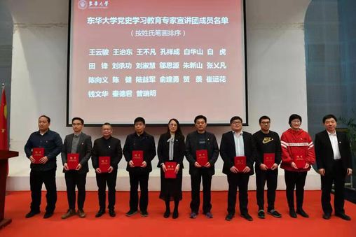 4月8日,我校党史学习教育专家宣讲团(以下简称为“宣讲团”)成立仪式暨首场宣讲报告会在松江校区举行。党委书记刘承功,校长、党委副书记俞建勇,党委副书记崔运花,副校长陈革、舒慧生等在校党政领导出席会议。会议由党委常委、党委宣传部部长任晓杰主持。