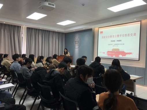 2021年4月15日是《中华人民共和国国家安全法》颁布实施以来的第六个全民国家安全教育日,为深入开展党史学习教育,推进党支部成员学习党史走深、走心,“筑梦榜样”生物楼研究生党支部于生物楼3089开展了以“国家安全教育日暨学史悟思党课”为主题的党日活动。学院党委副书记陶莉,“筑梦榜样”生物楼研究生党支部党建指导老师张兴群,学生工作办公室主任王学保参加本次党课,活动由“筑梦榜样”生物楼研究生党支部书记潘攀主持。