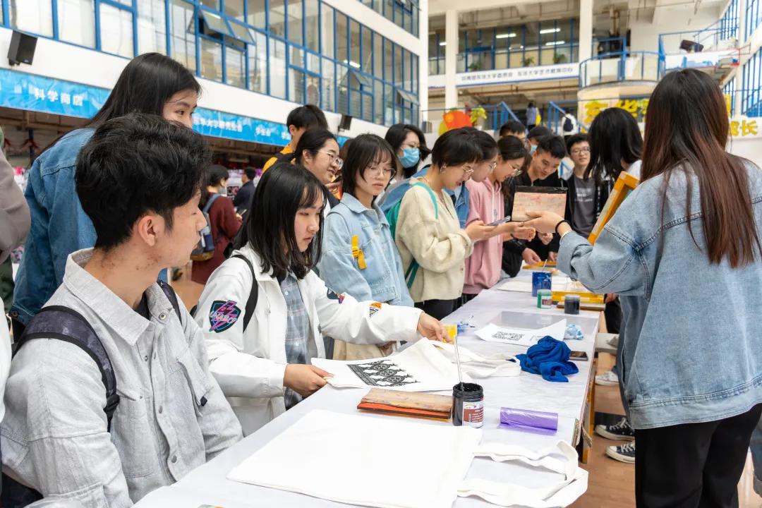 “千年彝绣·传统遇见时尚”系列作品展于4月20日至22日在松江校区大学生活动中心展出。展览期间,学校相关部处、纺织学院、纺织面料技术教育部重点实验室负责人和相关老师莅临现场,与同学们一同观展,活动吸引了500余位师生,百余位还饶有兴致地参与了手工体验。
