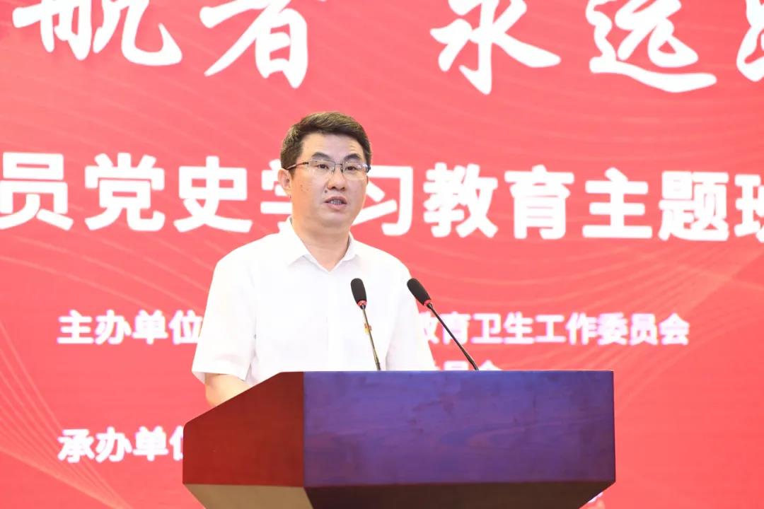 闵辉在讲话中向在本次比赛中获得优异成绩的辅导员表示祝贺。他指出,高校辅导员肩负着“为党育人、为国育才”的光荣使命,在党史学习教育中,要先学一步、学深一度,努力把握党的理论创新的历史脉络,深刻感悟马克思主义的真理力量,充分发挥学史力行的作用,准确捕捉大学生思想动态中的重点、热点、难点,通过理论宣讲、主题班会、谈心谈话等载体传播好党的声音,同向发力,扎实推进“党史”这堂大思政课,确保“讲台”底色鲜明,要以党史学习教育为抓手,落实立德树人根本任务,以持续创新为纽带,提升日常思政教育成效,在“三全育人”大格局中展现更大作为。