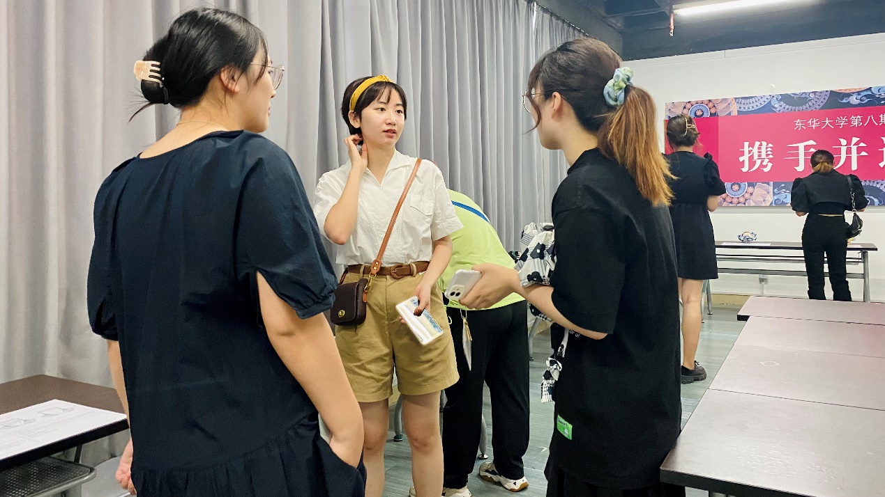 (参赛学生参观作品并互相交流设计)
