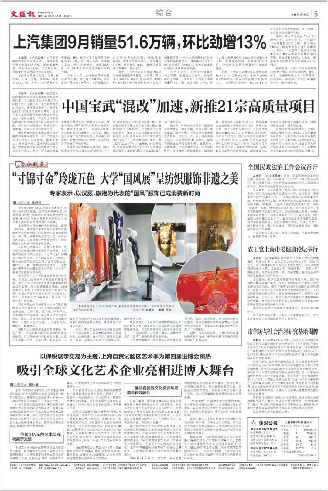据悉,继本次展览后,上海纺织服饰博物馆将逐年推出“中华纺织服饰非遗的历史和创新”系列活动。