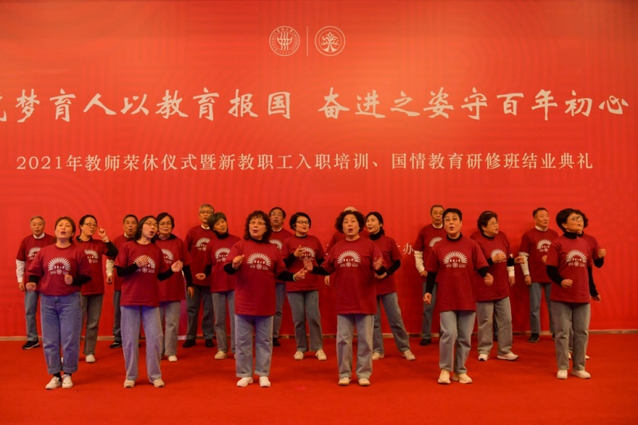 活动中,我校退休教工合唱团带来精心准备的合唱歌曲《少年》,用洋溢着青春的律动表达退休教师的皓首少年心、浓浓东华情。