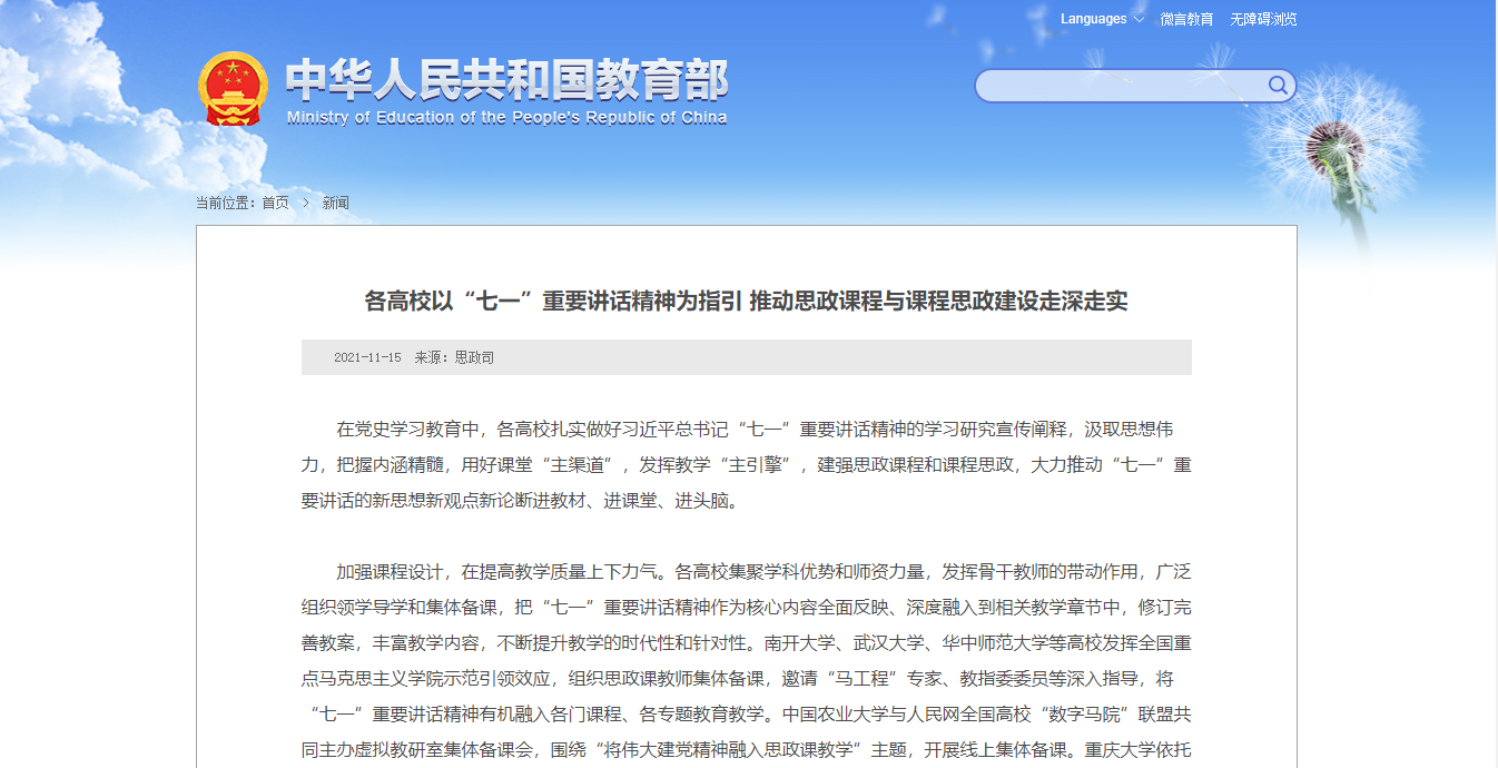 各高校以“七一”重要讲话精神为指引 推动思政课程与课程思政建设走深走实